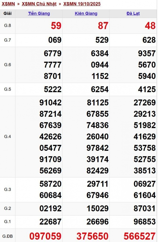 Chốt lô An Giang đặc biệt ngày hôm nay 19/10/2025 như sau: